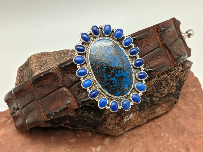 Chrysocolla, Lapis Turquoise Cluster Crocodile Bracelet