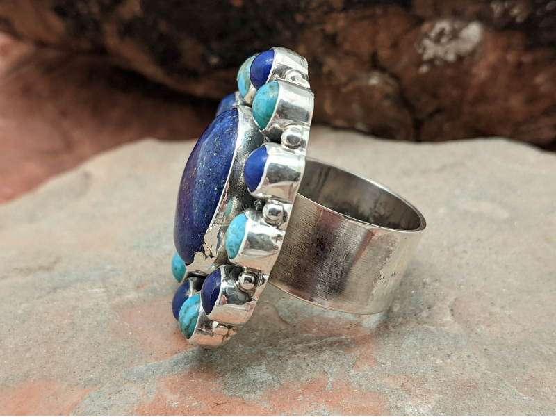 Lapis Lazuli and Kingman Turquoise Cluster Ring
